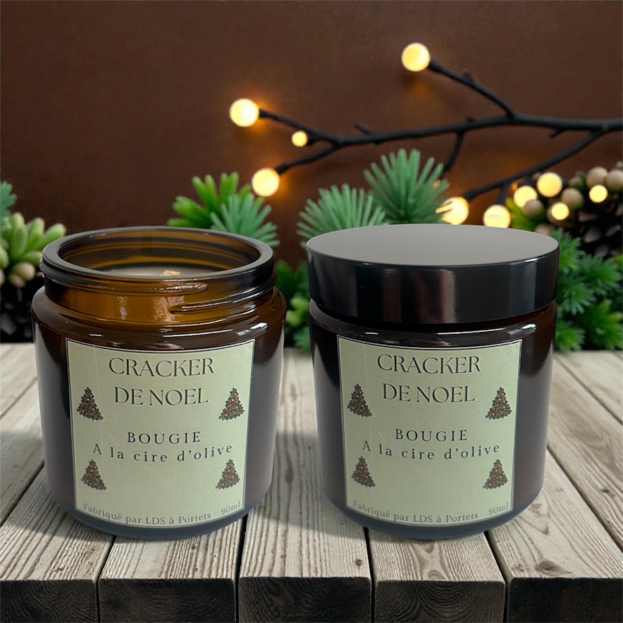 Bougie parfumée Cracker de noël, 90ml. Elle sent le sapin de noël.