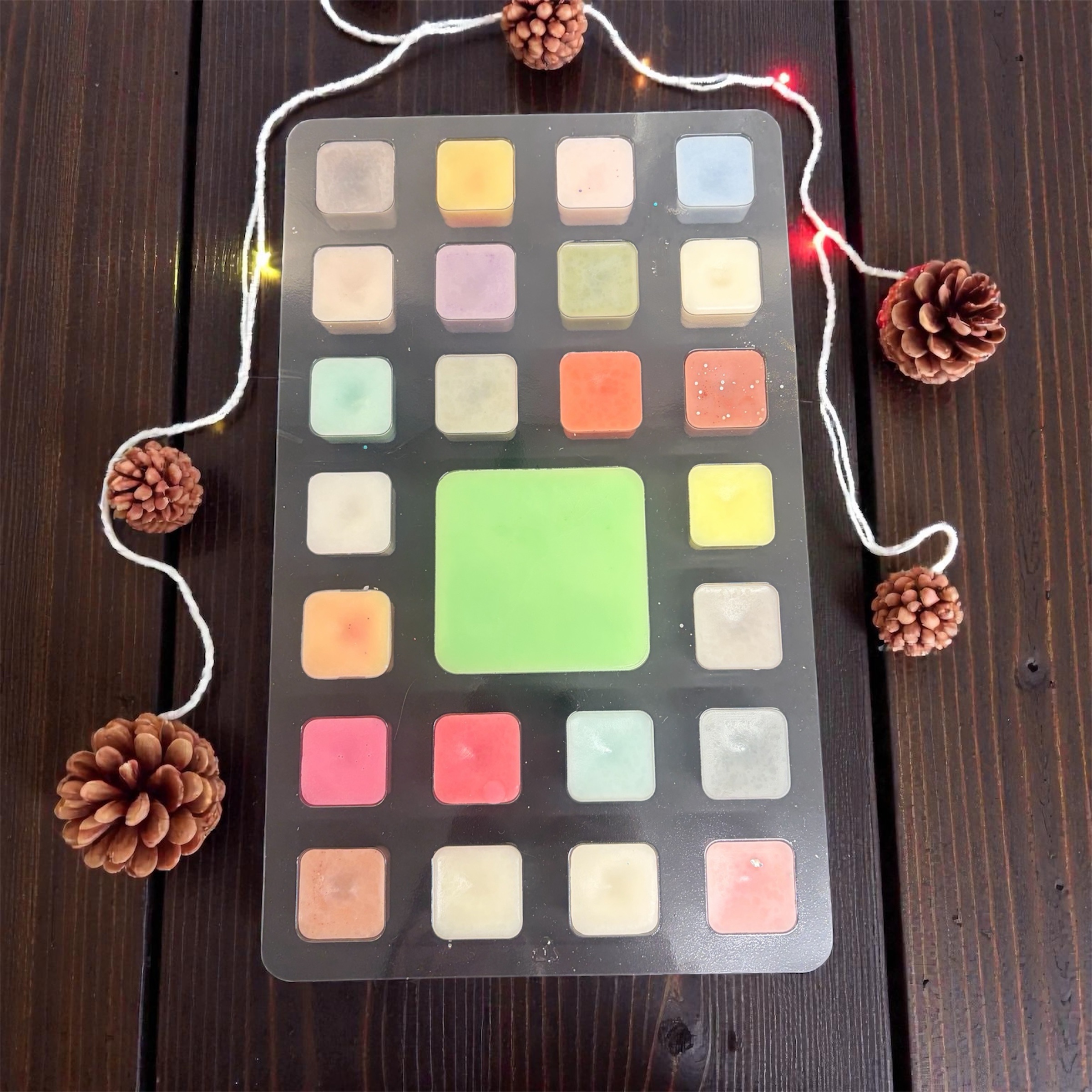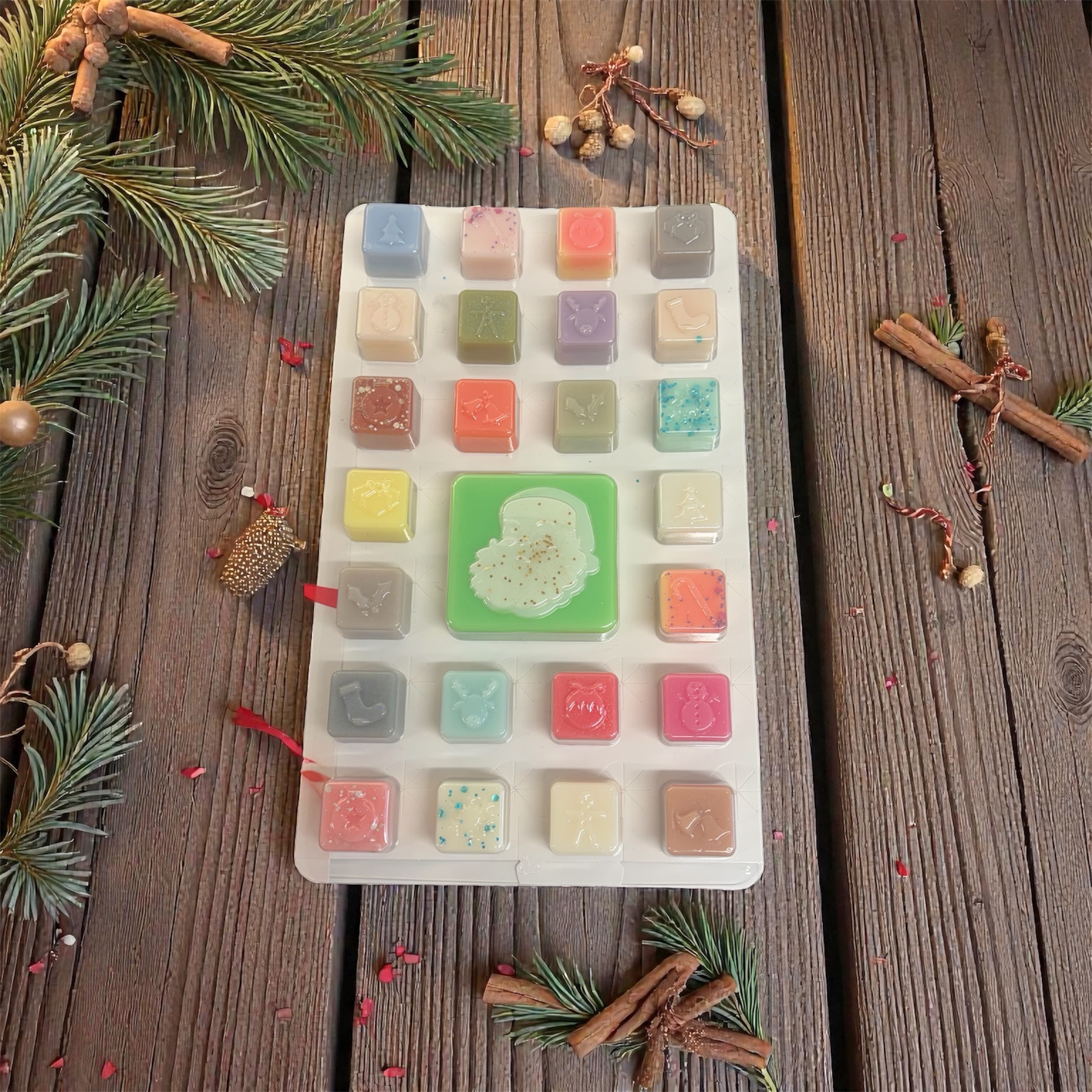Calendrier de l’avent comprenant 25 fondants parfumés différents.